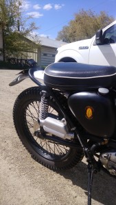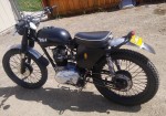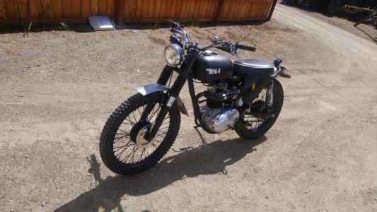 Built 5 years ago to compete in AHRMA vintage trials, in the Premier Lightweight Class. Motor and transmission gone thru, gear set is standard (not wide or close ratio), Bearings and seals replaced, new piston & rings, new clutch, new primary gear (18 tooth) and chain, Electrex ignition and charging system, Mikuni carb, new chain and sprockets, new wheel bearings, new rear tire (18″) NOS front tire (20″), rear-set trials foot pegs, alloy muffler, fenders and “bread loaf” fuel tank with Monza gas cap, original seat pan with new upholstery by Cory Burkhead, new fork stanchions, bushings, seals & gators, new rear shocks, new brake shoes and just replaced battery with an AGM.
