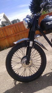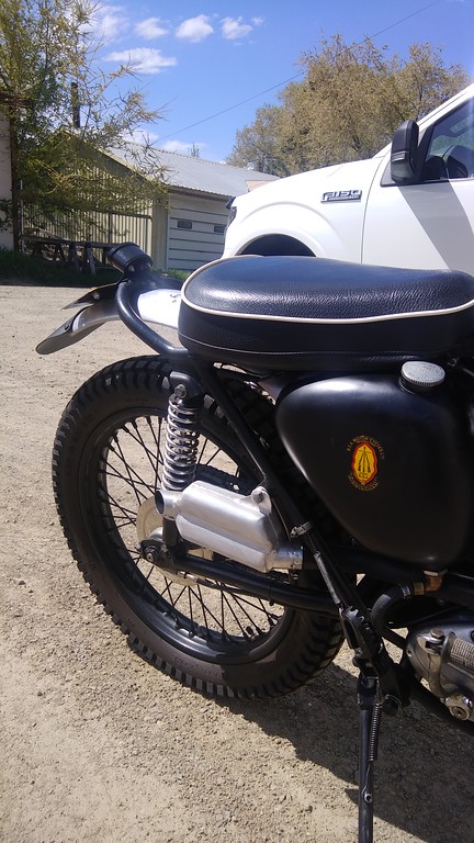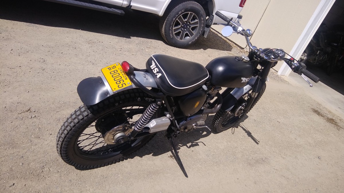 Rode at two AHRMA vintage trials events and realized trials is not for me. Put lights, speedo & mirror on the bike, got it titled and licensed with a permanent special interest plate (Oregon). Changed counter shaft and rear sprocket to make it more street able, but top speed is about 40 to 45 mph with 18 tooth primary. She’s an in-town cruiser right now. Rode at 2018 Seattle DGR event and was 2nd place for peoples choice in lightweight division.