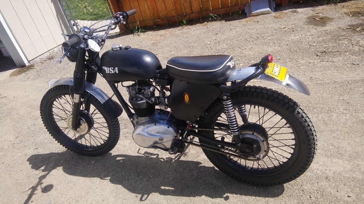Starts and runs great. Would be fine for someone to putt around town or change the sprockets and ride it in vintage trials. Rear fender says “Bar Fly” because it used to hang in a Seattle bar. Will include the Rupert Ratio engine and chassis books as well. Build was documented here: https://advrider.com/f/threads/beezer-madness.1155702/