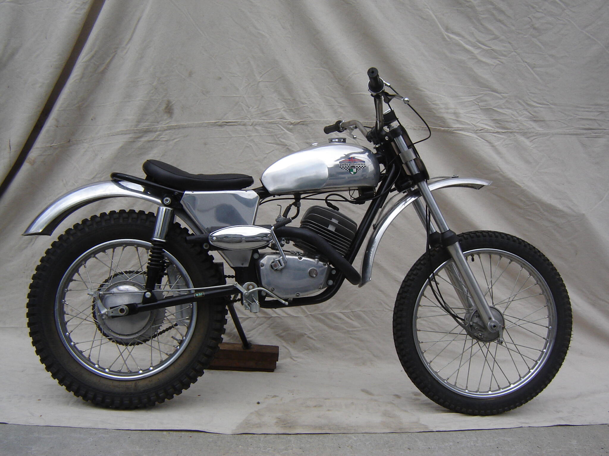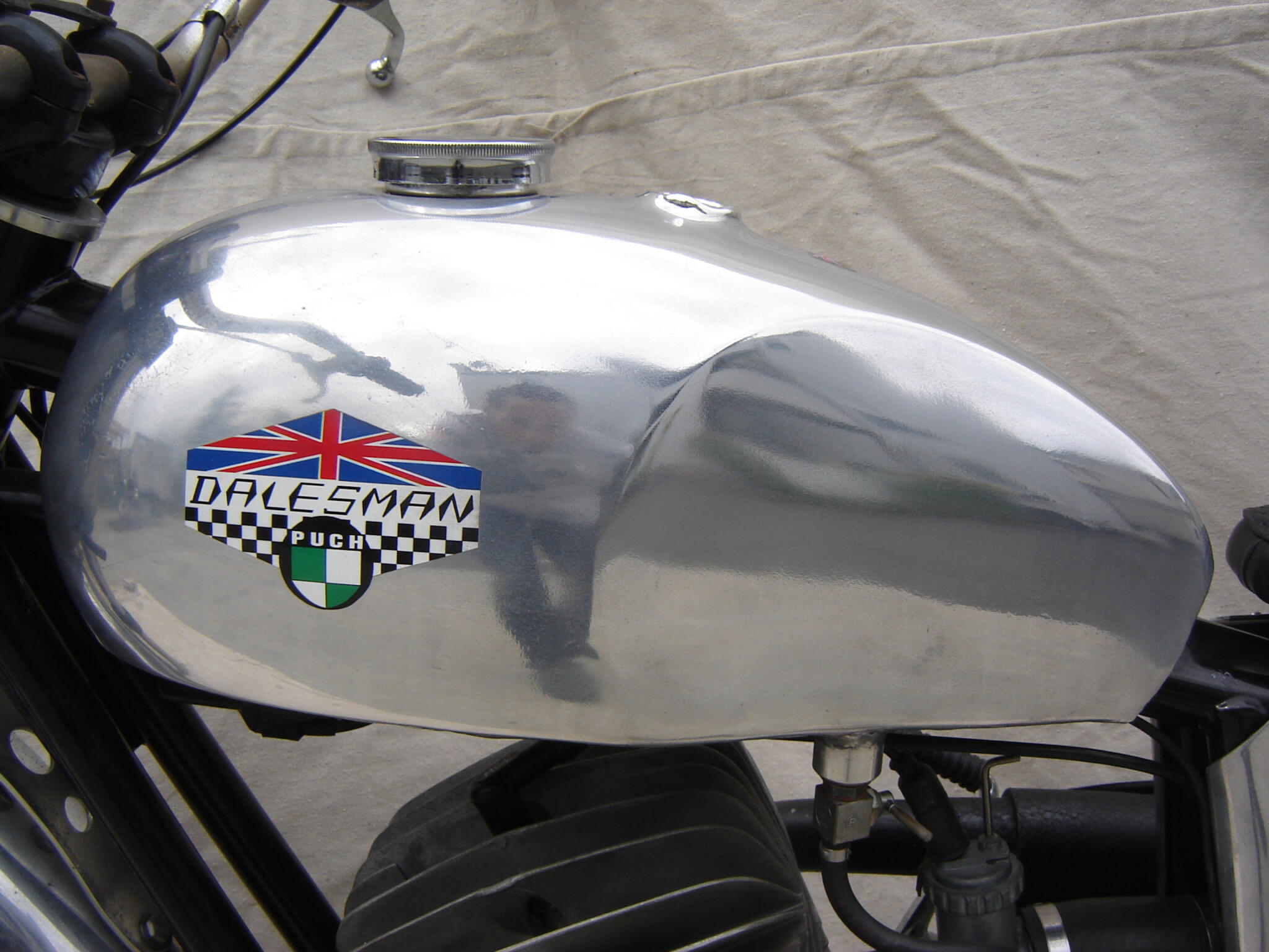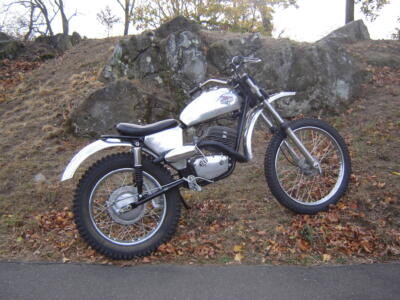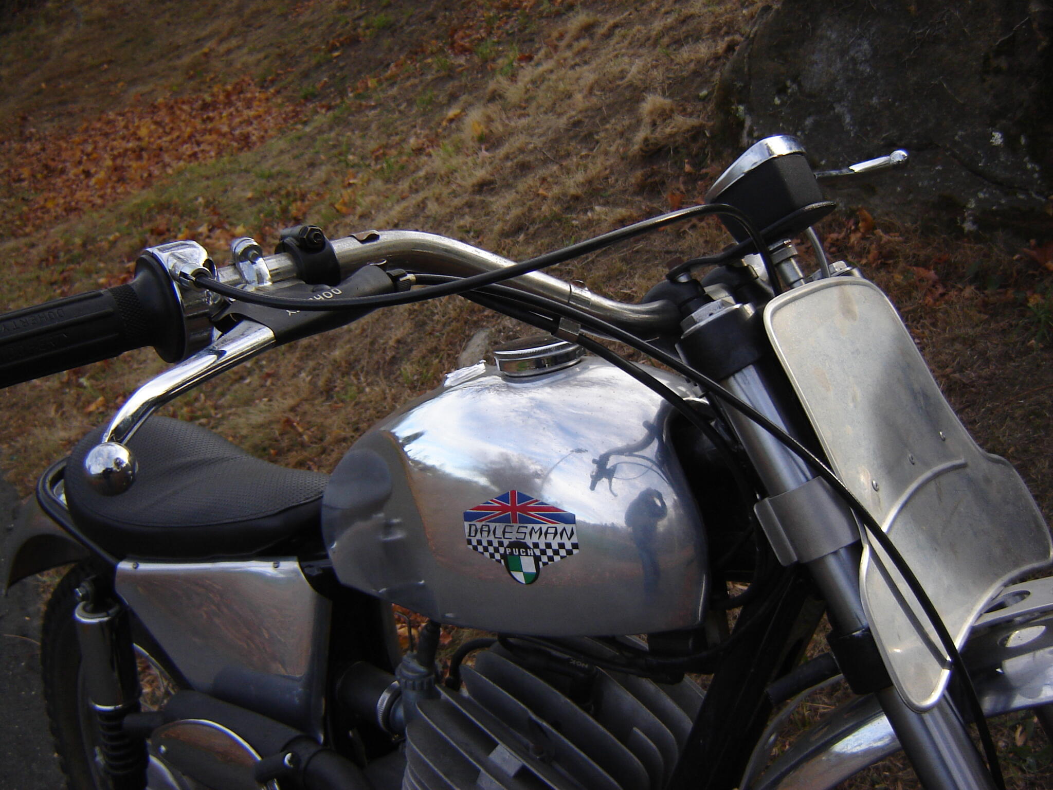 Dalesman motorcycles were produced from 1968 to 1974 by Peter Edmondson in Otley, West Yorkshire, England. The Dalesman installed an Austrian-built 124cc Puch, 12hp at a high 12,000rpm, two-stroke engine and 4-speed gearbox in a duplex Reynolds 531 tube frame first with Puch, then with REH forks, that was versioned for enduros, scrambles and trials. It weighed only 156lb! This bike runs well and is ready to ride or display.