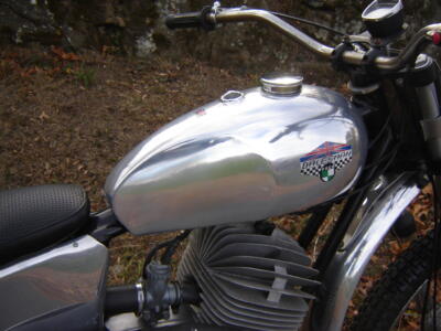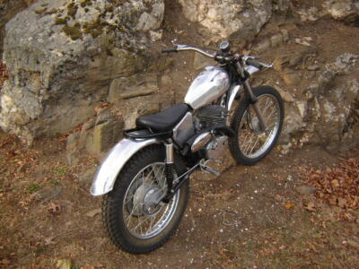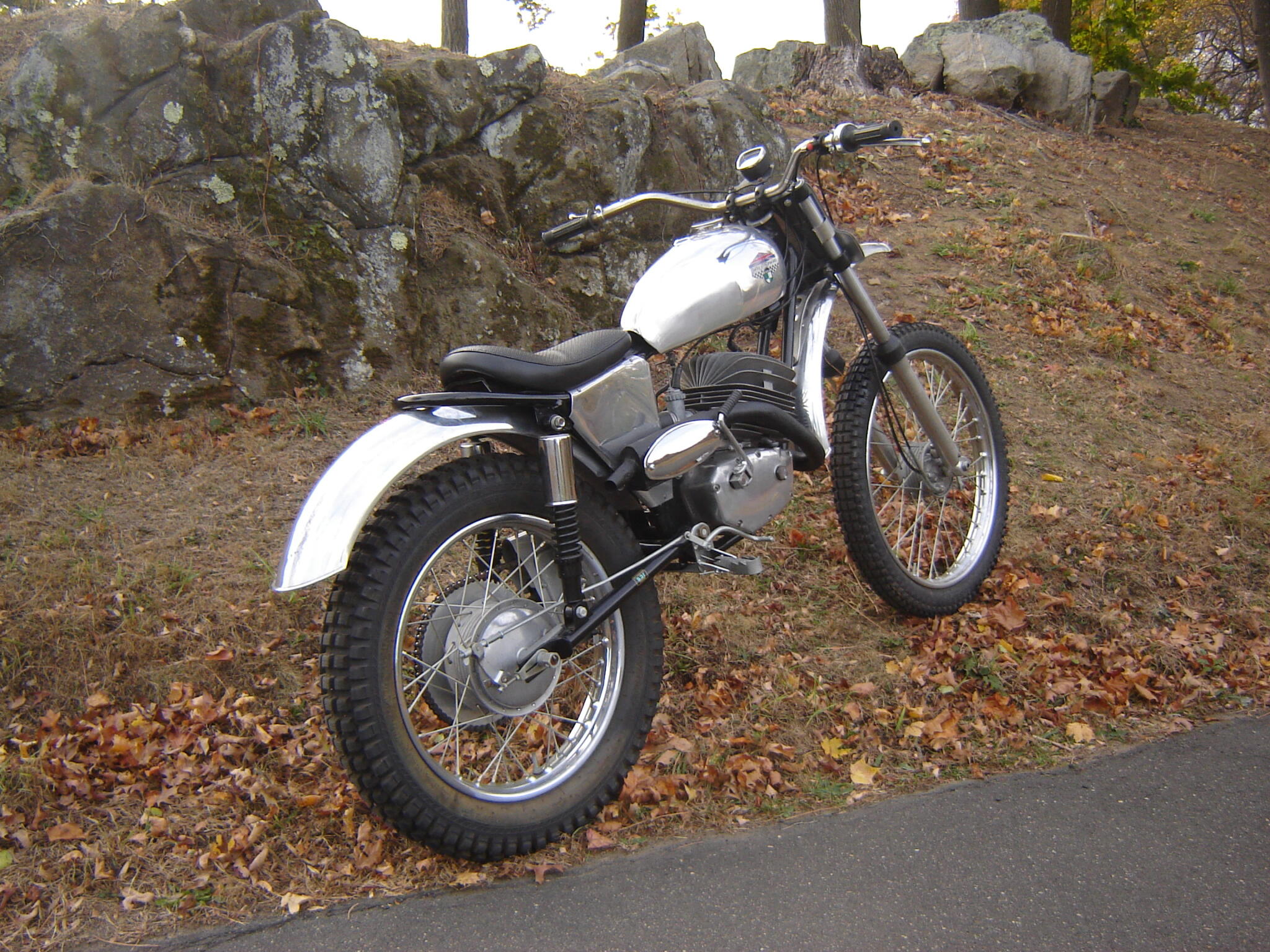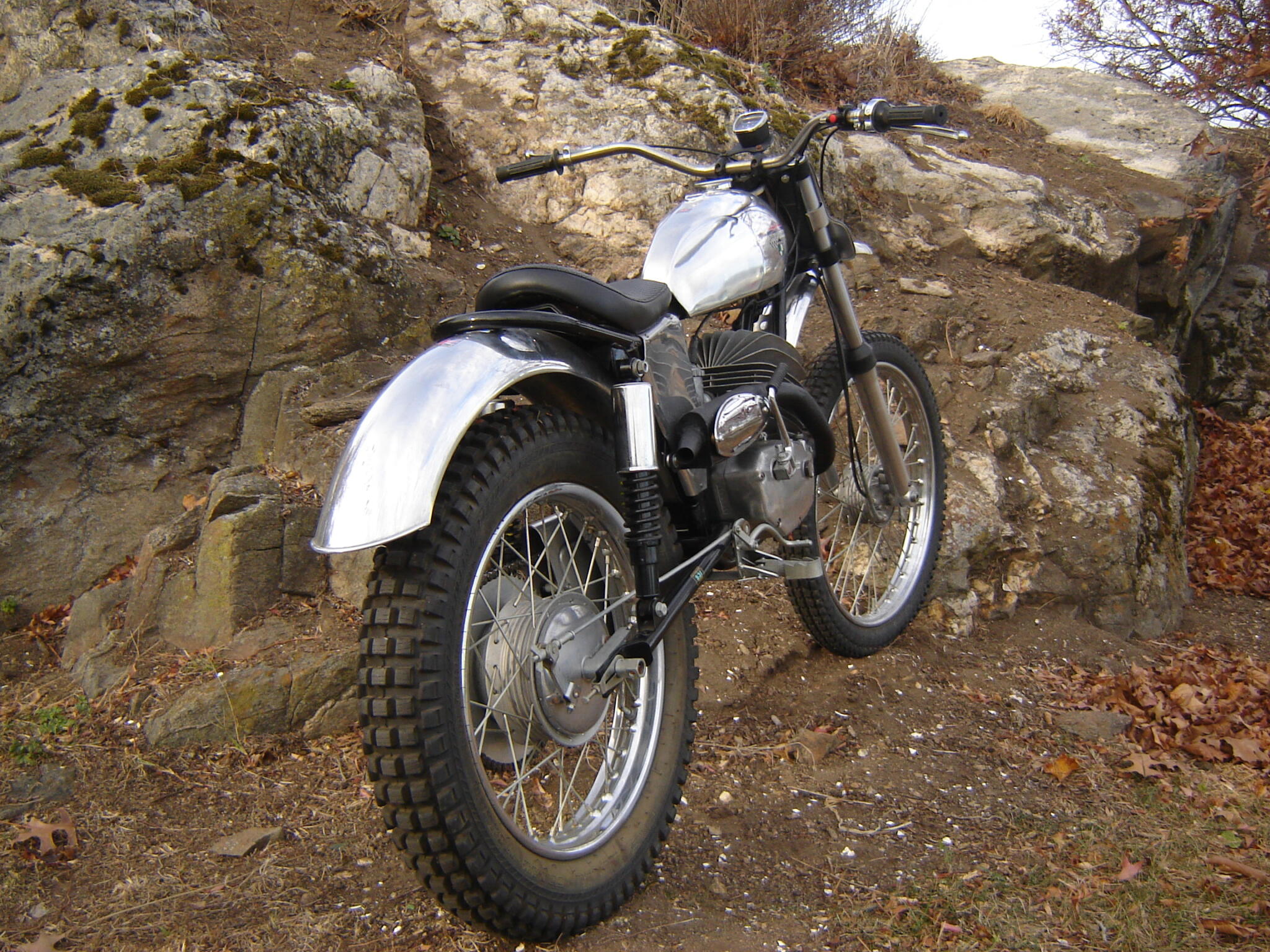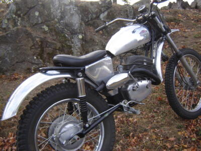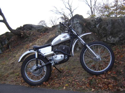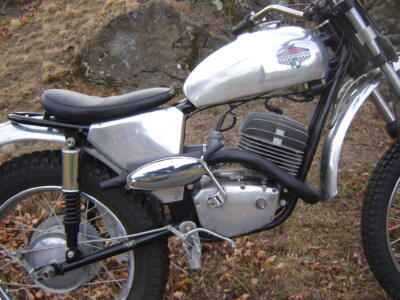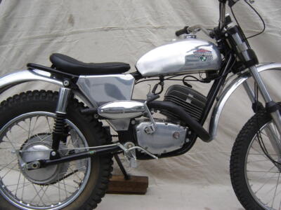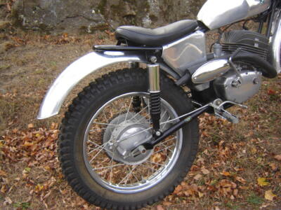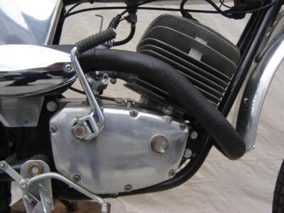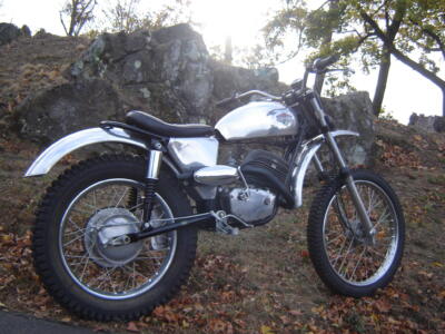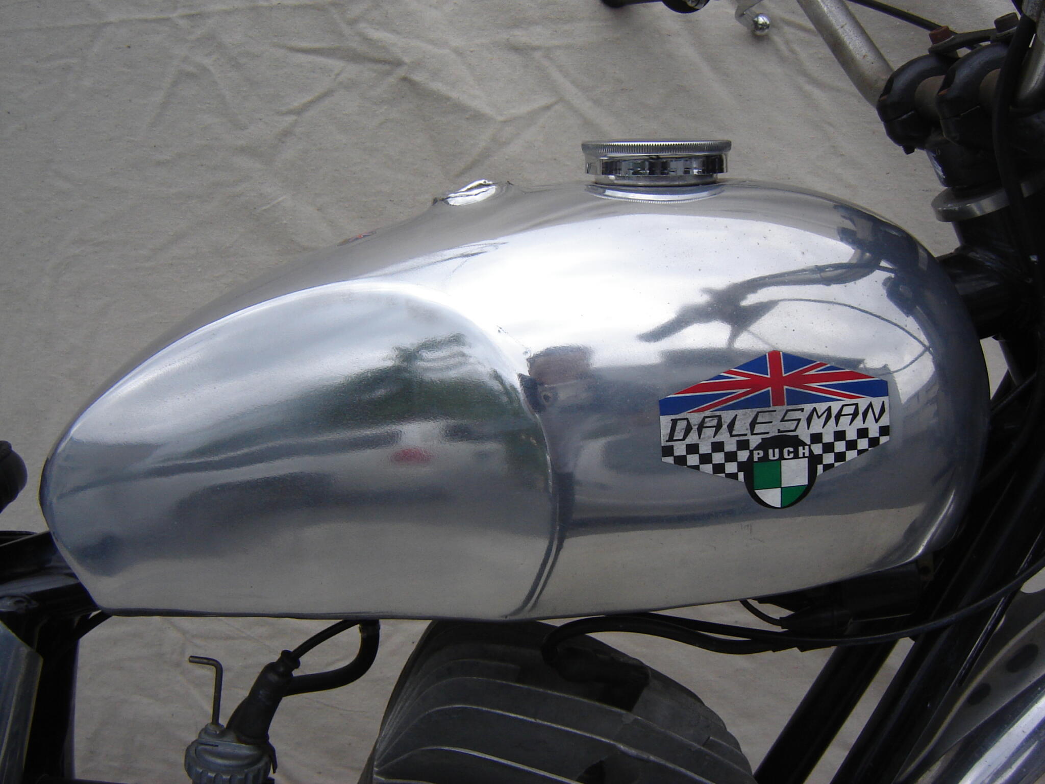 Dalesman motorcycles were produced from 1968 to 1974 by Peter Edmondson in Otley, West Yorkshire, England. The Dalesman installed an Austrian-built 124cc Puch, 12hp at a high 12,000rpm, two-stroke engine and 4-speed gearbox in a duplex Reynolds 531 tube frame first with Puch, then with REH forks, that was versioned for enduros, scrambles and trials. It weighed only 156lb! This bike runs well and is ready to ride or display.
