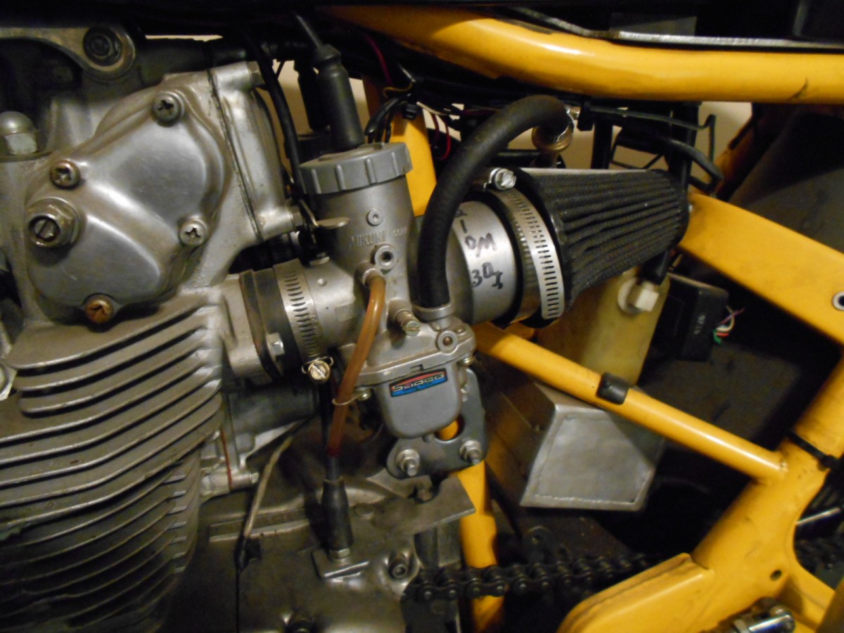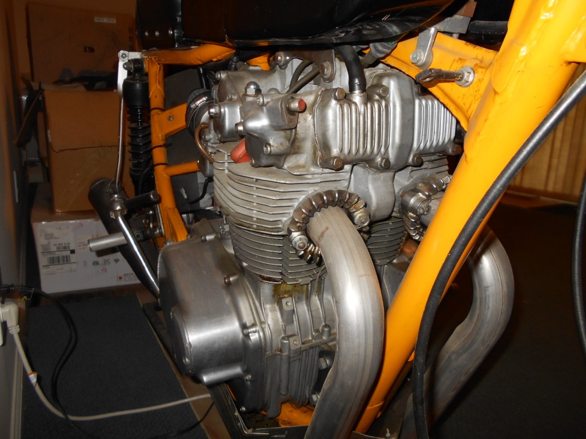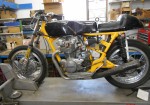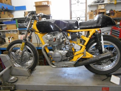 1970 CB 450 Roadracer, Gt 750 front brake system, Akront Woody,s Wheel Works superlace wheels, Dual Plugged 12.5/1 compression motor, .333 thousands megacycle cam- motor dyno run 44 horse power, Mikuni carbs, aluminum tank, progresive shocks.