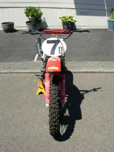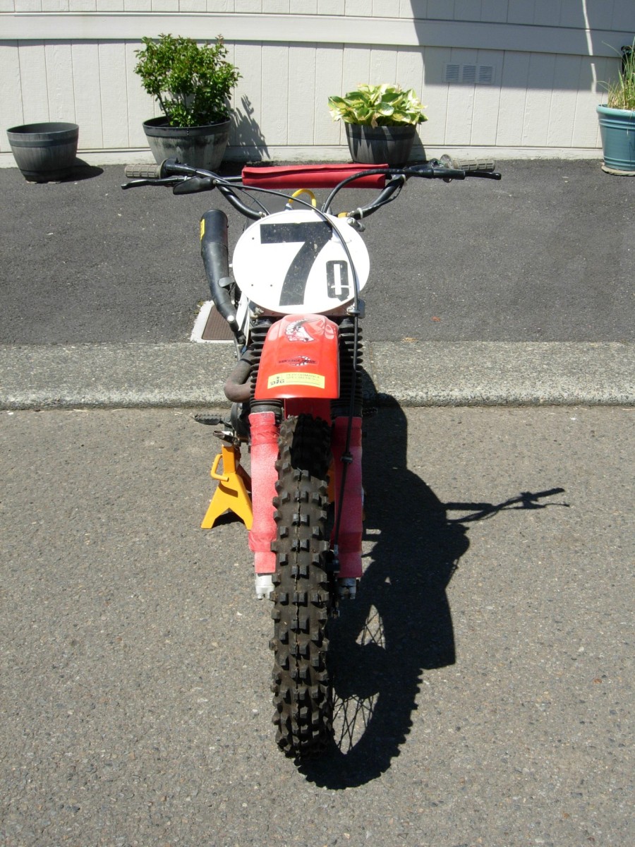Stock XL 350 frame, race-built engine, near new Ohlin rear shocks, custom pipe, DG Megaphone exhaust, Vintage Iron Ground Control Fork Kit (new springs and valving), 1974 Elsinore front wheel, Stock XL 350 rear wheel with cushioned hub. Has not run in 10 years but engine was running strong when last parked. Also available to be sold separately is a KLP aluminum swingarm specially built for this bike but never installed.