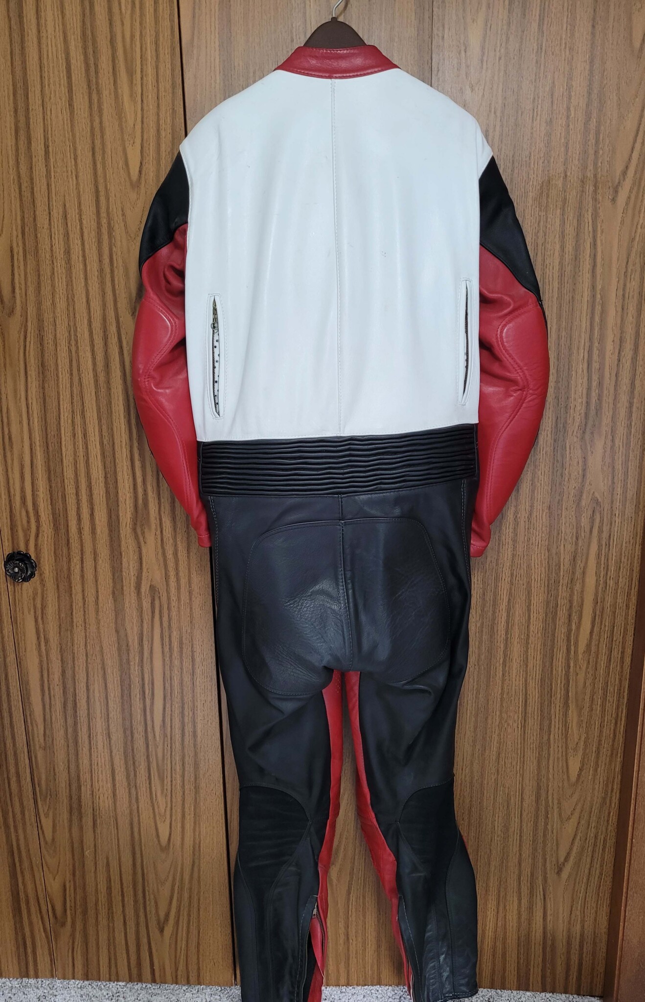 Bates one piece leathers made for me several years ago and only used for track schools, primarily Pridmore’s CLASS schools. Never down, always stored in a climate controlled, non smoking environment. I am 5′ 10″ 180 pounds. At 81 and with some health challenges, I will no longer be able to use these excellent leathers. I hope that an AHRMA member can put them to good use.