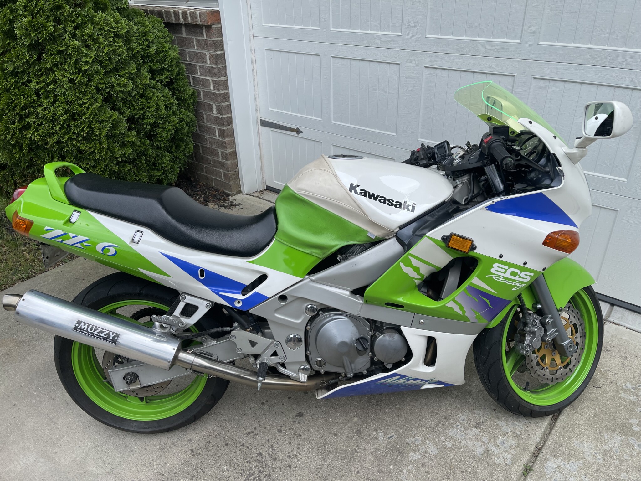 Introducing the Classic Ninja ZXE, a stunning blend of timeless design! This iconic Kawasaki sport bike is a perfect tribute to it’s own legacy, featuring a sleek aerodynamic body that is comfortable. Powered by a potent liquid-cooled engine, the Ninja ZXE delivers consistent acceleration and responsive handling making it ideal for both spirited rides on winding roads and everyday commuting. The vibrant paint job and chrome accents bring a classic aesthetic, while the comfortable seating and advanced suspension ensure a smooth ride. Meticulously maintained and in excellent condition, including upgraded brakes and a premium exhaust system. Don’t miss this opportunity to own a piece of motorcycle heritage.