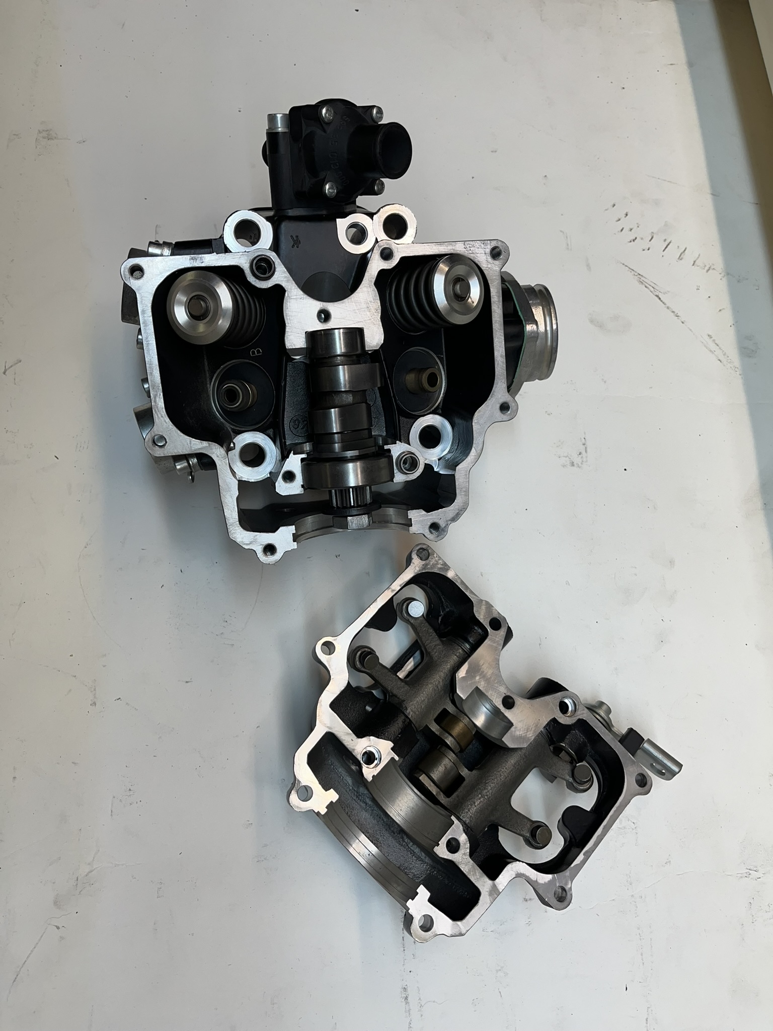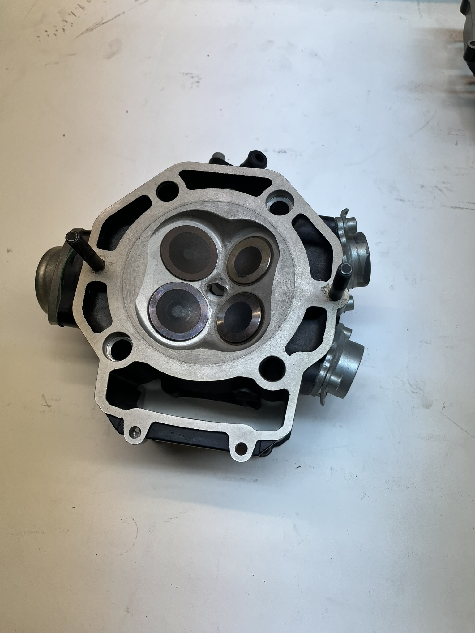 KTM LC4 600cc Complete cylinder head assembly including valves, valve springs, collars, rocker arms, camshaft, etc. All in new condition.