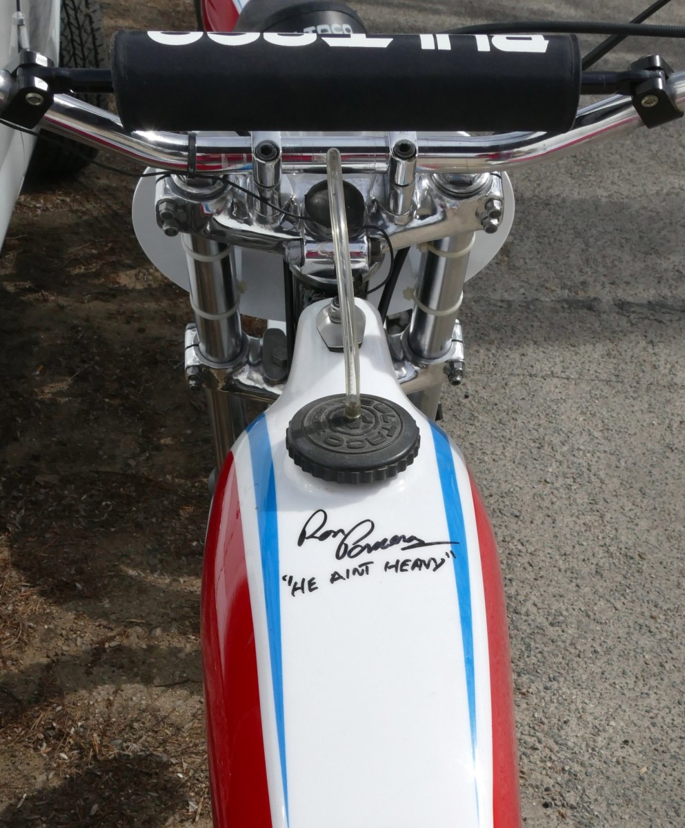 The AHRMA Twins! Two Bultaco M144 Pursang 125s. Retrograded suspension to race Vintage Sportsman class. One shifts left. One shifts right. “Bike Show” shiny but 100% gate-ready! Gas tanks painted and signed by Ron Pomeroy! Offered to AHRMA members first — $7995/pair. Call for complete information and more photos. 208-258-1890