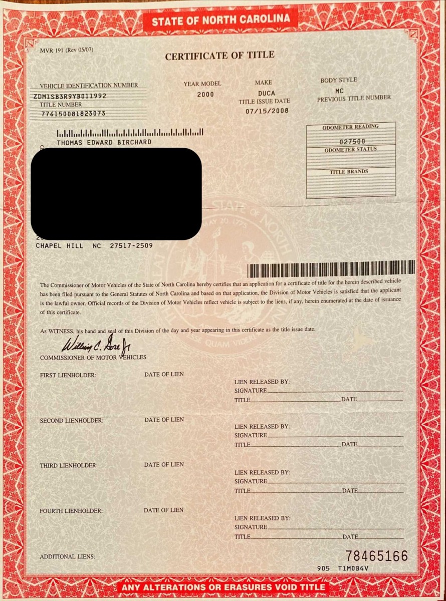 North Carolina Title in-hand and can be readily transferred!