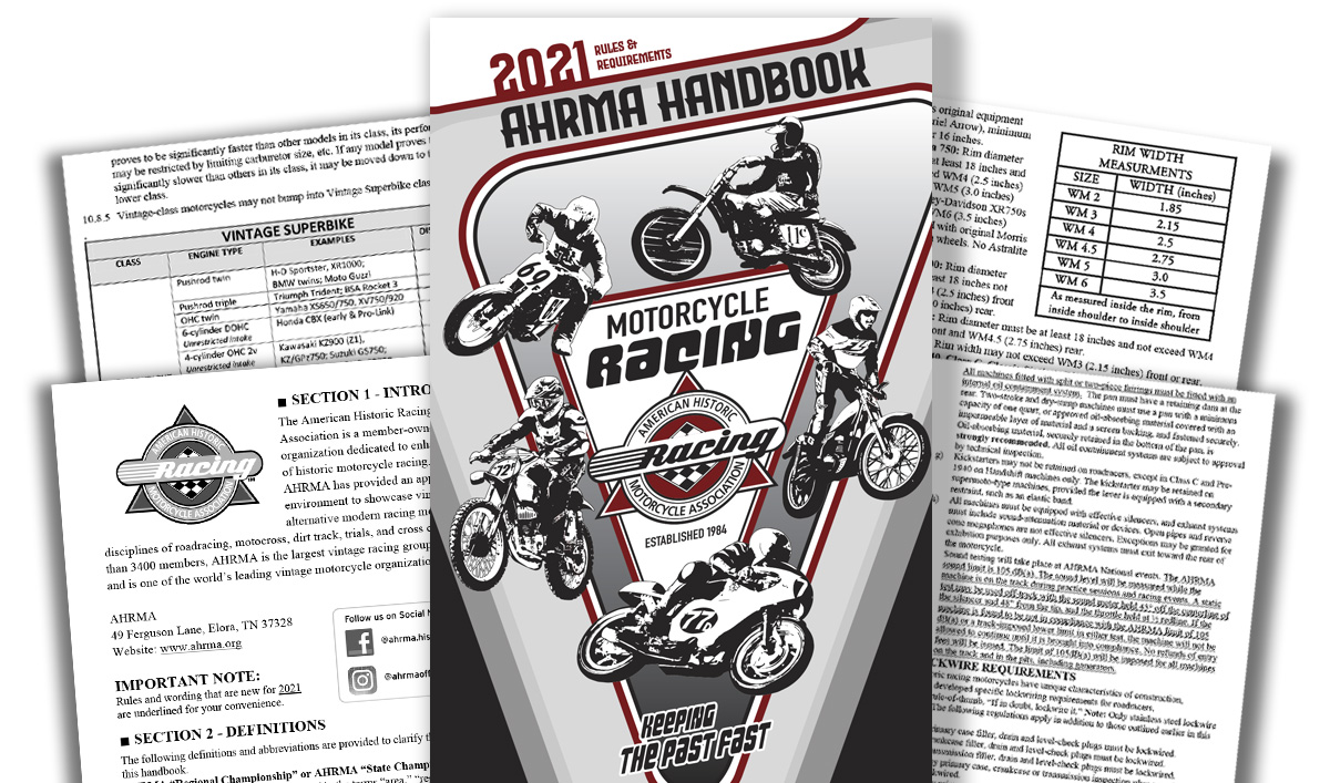 The AHRMA Handbook is published annually, and is the organization’s rulebook and anchor source of other information regarding staff, contacts, suppliers and more. This 100+ page publication finds a home in every competitor’s toolbox and is a great way to keep your name in front of our 3000+ members.